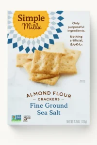 Ok, this review is for the Simple Mills Almond Flour Crackers with Sea Salt. Simple Mills is a cool company!  They are deeply invested in making their ingredients and their processes better. Check out their groundbreaking work on the Simple Mills’ Revolutionary Almond Project, which is transforming the way almonds are farmed!  They care about people and the planet! I really do love the Simple Mills brand, and I think I have tried most of their snacks and baking mixes. I promise you I will review many Simple Mills products in the future!